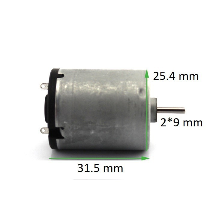 Động cơ motor 365 mini, 6-12V, 3000-7000 vòng-phút Với khoảng điện áp hoạt động rất rộng (từ 6 đến 12V), do đó bạn có thể sử dụng vào rất nhiều mục đích yêu cầu tốc độ khác nhau (dao động từ 3000 đến 7000 vòng/phút).
