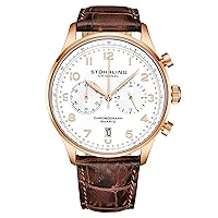 Stuhrling Original Mens Quartz Chronograph Dress Watch - Stainless Steel Case and Leather Band - Analog Dial with Date 17,009,775đ