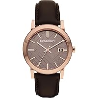 BURBERRY Luxury Rare Rose Gold Watch Womens Unisex Men The City Brown Authentic Leather Beige Dial Date BU9013 12,085,521đ