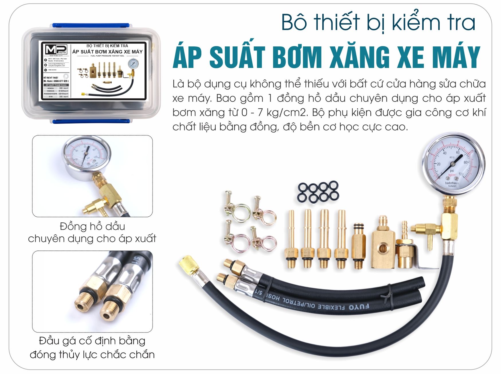 Dụng cụ đo áp suất bơm xăng Minh Phong đảm bảo đủ chức năng phục vụ đo áp xăng cho xe máy