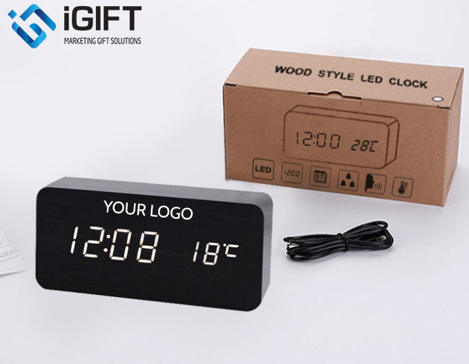 Đồng Hồ Gỗ LED để Bàn In Khắc Logo Theo Yêu Cầu - IGIFT