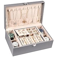LANDICI LANDICI Jewelry Box Organizer for Men Women, 2 Layer 4 Slot Watch Storage Case with Removable Tray, PU Leather Large Jewellery Holder Display for Watches Sunglasses Rings Earrings Necklace, Grey 1,027,413đ
