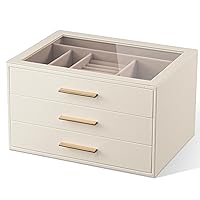 -21% pickpiff pickpiff Jewelry Box Organizer Case for Women: 3-Layer Jewelry Storage Case with Glass Window, Ivory Leather with Pink Velvet, Holder for Ring Necklace Bracelet Brooch Watch, Great Gift for Her 958,973đ 1,135,193đ