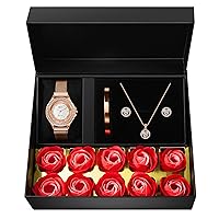 PURSEILVER Gifts for Women Jewelry Sets, 4 Pieces Rose Gold Women's Watch Necklace Earring Bracelet Birthday Gifts for Women's Jewelry Sets for Women Gift for Wife Girlfriend Her Birthday Gift for Mom Mother 3,217,233đ