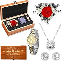 -6% Enquesa Gifts for Women,Gold Watches for Women 925 Silver Heart Necklace Stainless Steel Bracelet Bangle Forever Flowers Wooden Jewelry Box Set for Valentine's Day Christmas Mother's Day Thanksgiving Birthday Anniversary Wife Gift Ideas 3,063,108đ 3,195,408đ