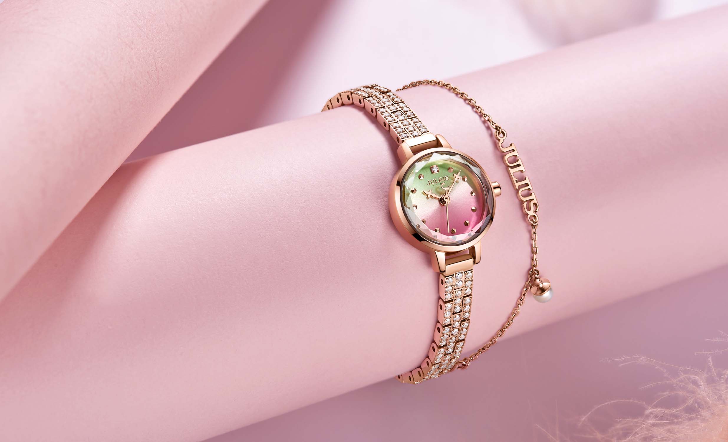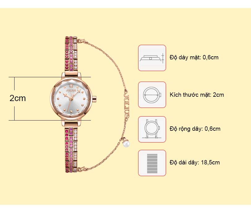 Đồng Hồ Nữ JS-035B Julius Star Đính Kim Cương Hồng - Shopee