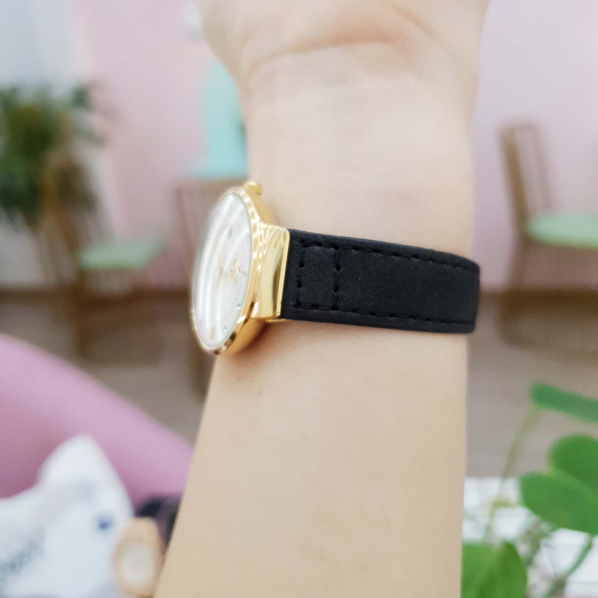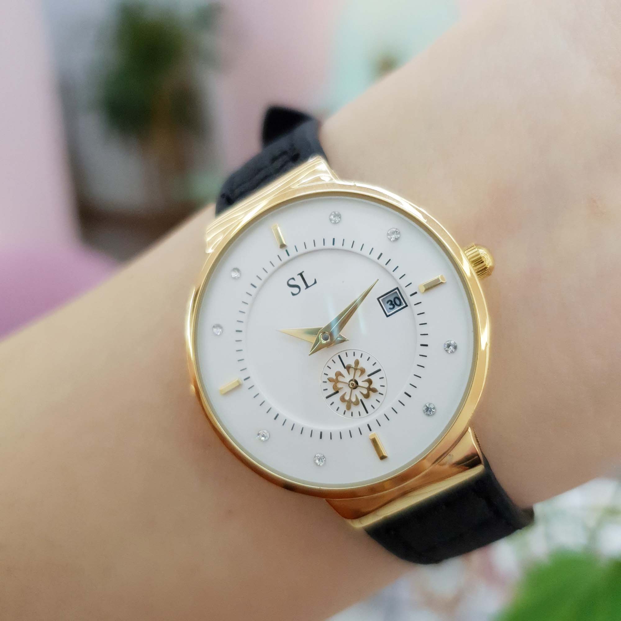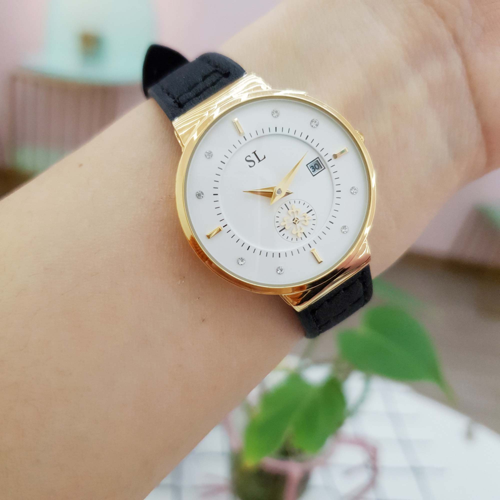 Giới thiệu Đồng Hồ Nữ SL Dây Da Viền Mạ Vàng Kim Rốn Độc Đáo Chống Nước Chính Hãng