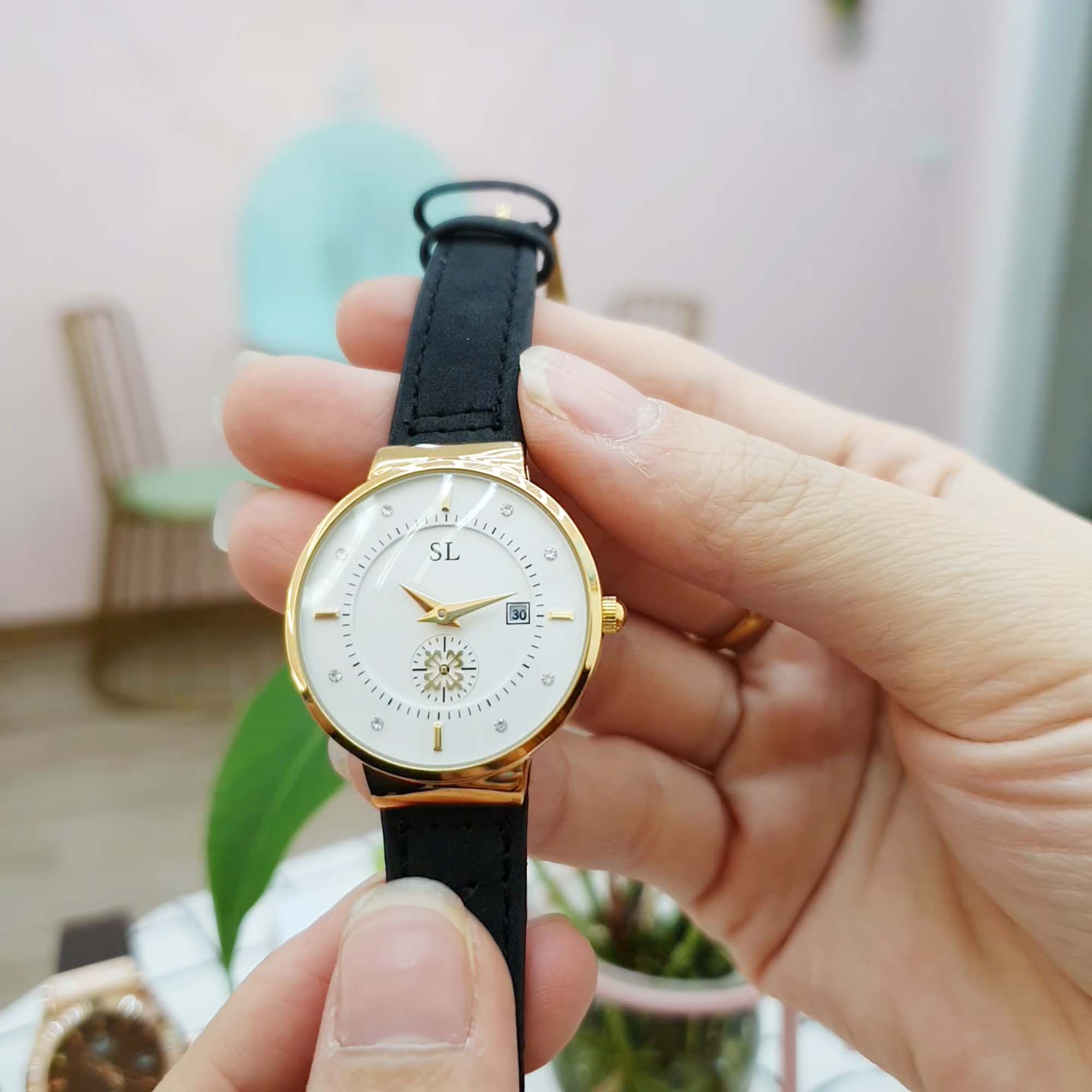 Đồng hồ nữ SL kiểu dáng thương hiệu Thụy Sĩ cao cấp với KIM RỐN độc đáo (kim giây góc 6h)