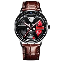 クォーツムーブメント スピニングカーホイールリムハブ ステンレススチール 夜光ポインター 防水 スポーツカジュアル腕時計 メンズ, レザーブラウンレッド。, クォーツムーブメント。 1,833,338đ Trang