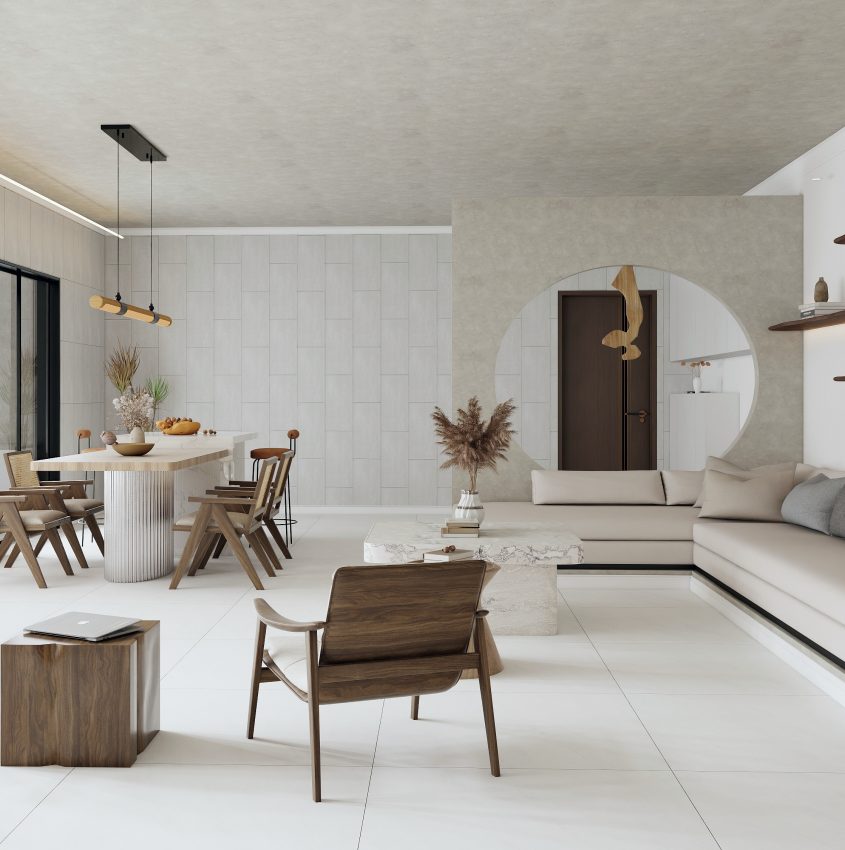 Phối ghép đồng điệu về màu sắc, họa tiết hài hòa giữa gạch bông truyền thống với các vật liệu,…