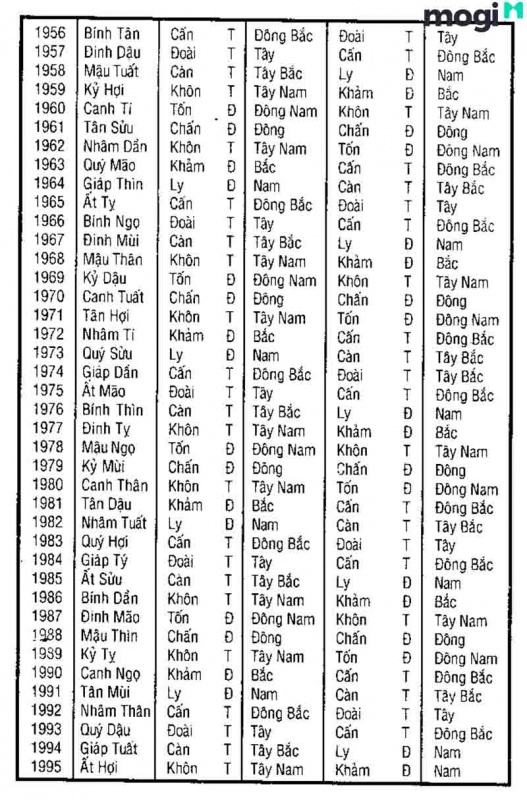 Tham khảo cách tra cứu cung mệnh theo quái số Bảng tra cứu mệnh trạch nam-nữ