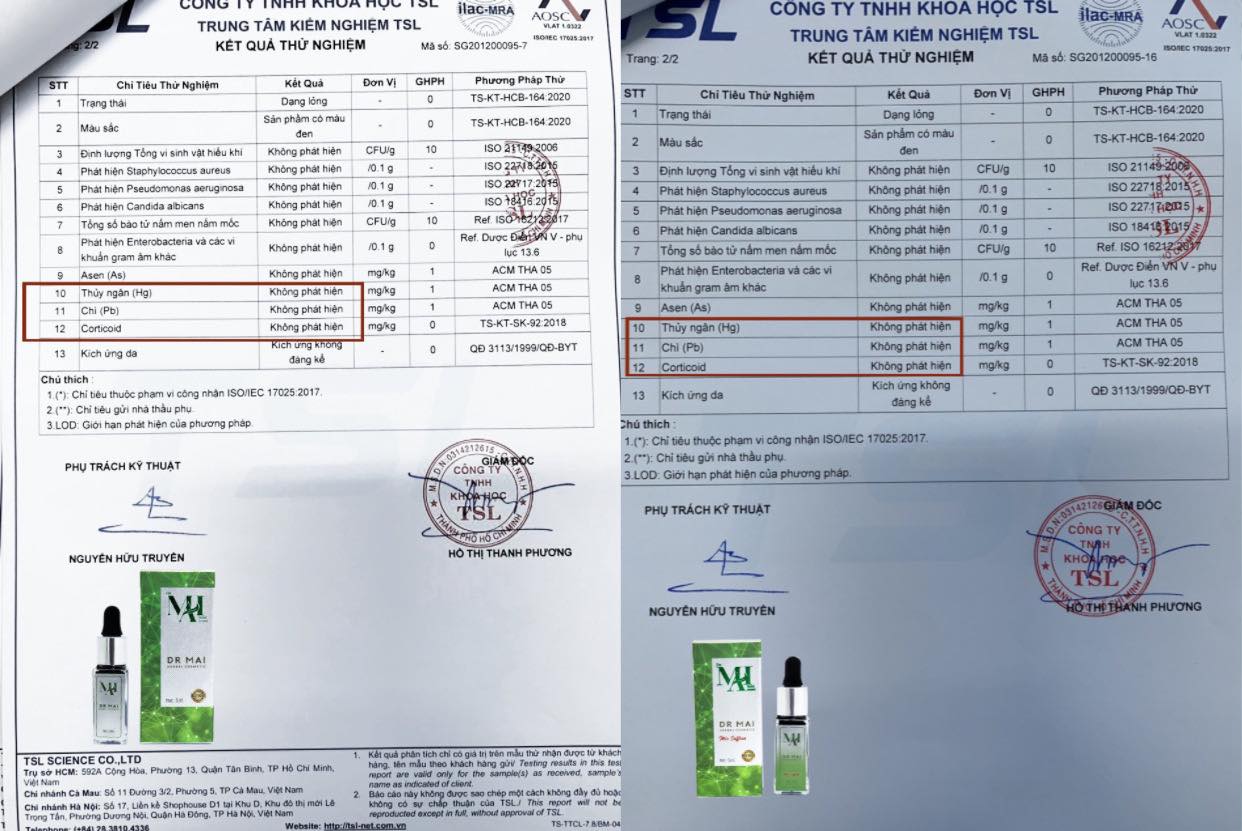 Dr Mai cũng đã nhận được “Giấy chứng nhận đủ điều kiện sản xuất Mỹ phẩm” và đã đạt chứng nhận đủ tiêu chuẩn ISO 9001:2015/ TCVN; ISO 9001:2015 và không chứa Corticoid. Đây là một yếu tố quan trọng để người tiêu dùng đánh giá, lựa chọn khi mua sản phẩm của nhãn hàng này.