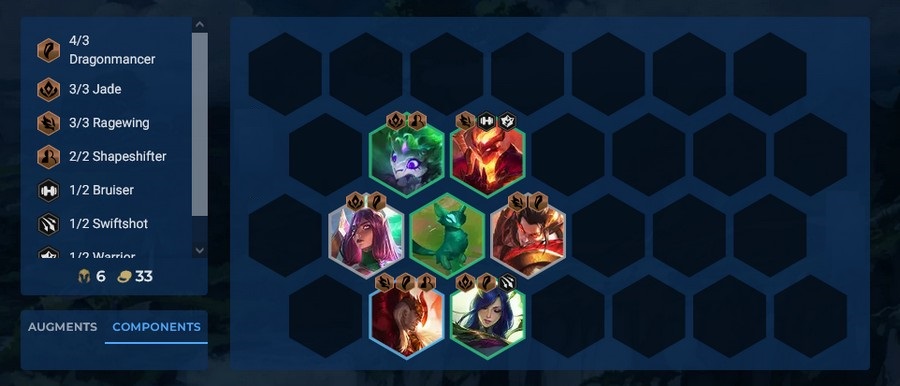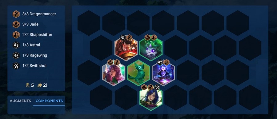 Mốc 6 Hóa Hình với Shyvana vẫn là mạnh nhất, vì khi đó các tướng của bạn sẽ có hàng tấn máu và cộng thêm hồi máu từ Tượng Ngọc, thì gần như là không thể ngăn cản. Chúng ta sẽ mất kích hoạt Chiến Binh Rồng cho Swain, bù lại bạn có Soraka để kích mốc 3 Ngọc Long thay cho Ashe thì nó vẫn khỏe.