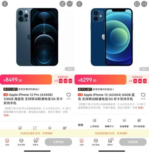 Tại Trung Quốc, theo số liệu từ trang thương mại điện tử JD.com, tính tới thời điểm 10 giờ sáng thứ 6 tuần trước, đã có tới 1.5 triệu người đặt mua iPhone 12 mới, trong đó bản tiêu chuẩn chiếm 737,000 đơn vị, bản Pro là 390,000 đơn vị. Số liệu từ trang Suning cũng cho thấy có hơn 800,000 người đã đặt mua 2 mẫu iPhone 12 mới.
