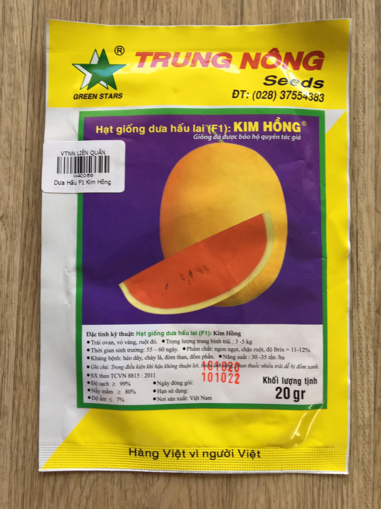 Dưa hấu F1 KIM HỒNG ( vỏ vàng , ruột đỏ ) Trồng bán TẾT ( công ty Trung Nông ) 1 gói ~ 500 hạt