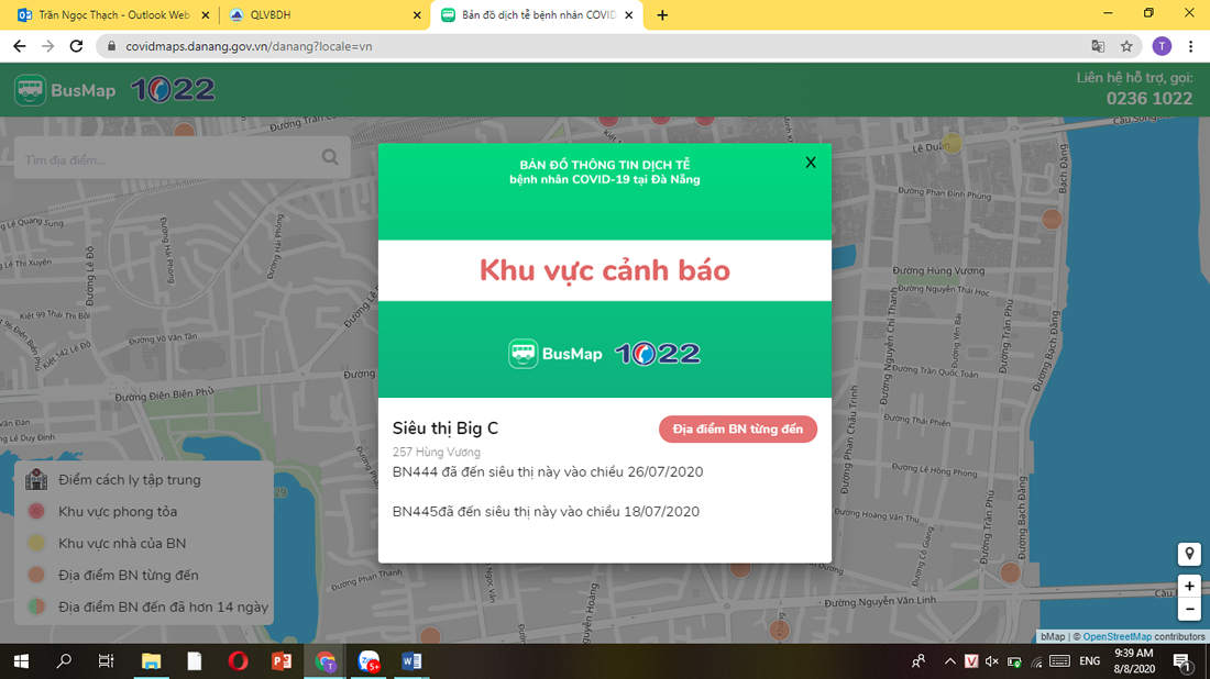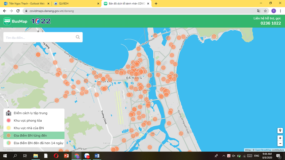 Bắt đầu từ ngày mai (10-8), Sở TTTT TP Đà Nẵng đưa vào sử dụng đại trà Bản đồ thông tin dịch tễ COVID-19 tại địa chỉ https://covidmaps.danang.gov.vn (trên bản đồ GIS, bảo đảm bản đồ có bản quyền và đúng chủ quyền biển đảo). Trên bản đồ này, người dân và các cơ quan có thể theo dõi trực quan: Các điểm cách ly tập trung, khu vực phong tỏa, khu vực nhà bệnh nhân (không cụ thể số nhà, tên bệnh nhân), các điểm bệnh nhân đã đến; chi tiết thông tin từng điểm, khu vực; tìm kiếm/lọc thông tin theo bệnh nhân… theo thông tin dịch tễ mà Ban Chỉ đạo đã công khai, cung cấp cho báo chí (Phụ lục hướng dẫn cơ bản kèm theo). Ứng dụng bản đồ cũng được tích hợp vào Cơ sở dữ liệu thông tin dịch tễ bệnh nhân COVID-19.