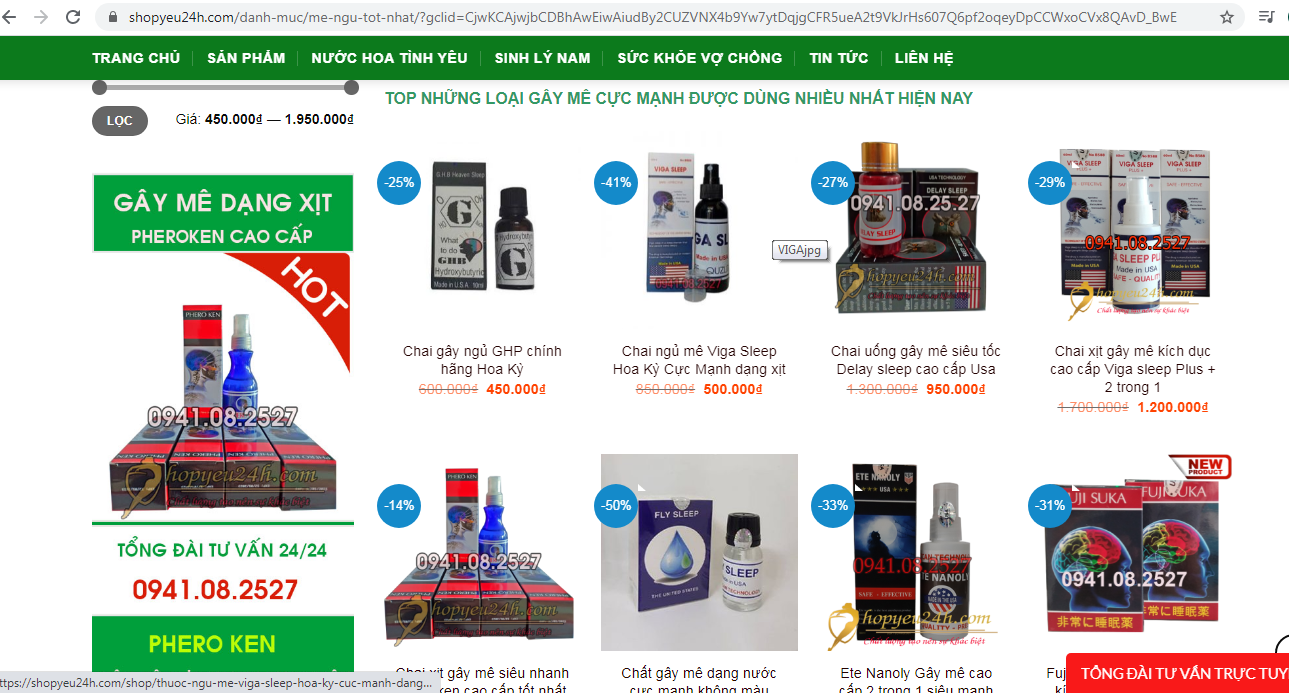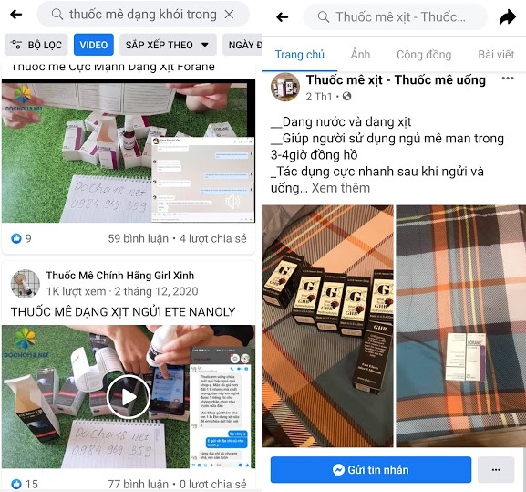 Chỉ cần gõ từ khóa “thuốc mê” hoặc “thuốc thôi miên” trên thanh công cụ tìm kiếm của google hoặc facebook, sẽ cho ra hàng loạt website chuyên bán các loại thuốc gây mê và nhiều loại hàng cấm khác nhau.