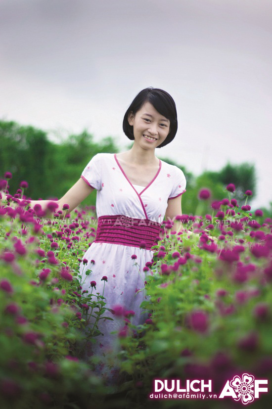 Giữa bạt ngàn sắc tím của hoa bách nhật, thiếu nữ Hà thành trở nên ngọt ngào và quyến rũ hơn.