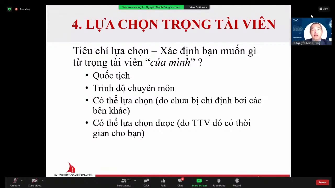 02:03:04Trọng tài viên và tố tụng trọng tài (Talk about arbitrators and arbitral proceedings)Nội dung buổi Trò chuyện trực tuyến với các Trọng tài viên: Luật sư Nguyễn Mạnh Dũng và Tiến sỹ -... more Nội dung buổi Trò chuyện trực tuyến với các Trọng tài viên: Luật sư Nguyễn Mạnh Dũng và Tiến sỹ - Luật sư Đặng Xuân Hợp trao đổi về công việc của trọng tài viên và tố tụng trọng tài ngày 15/05/202025 views