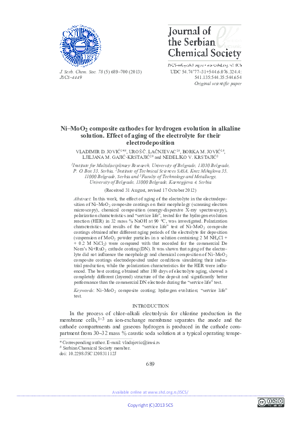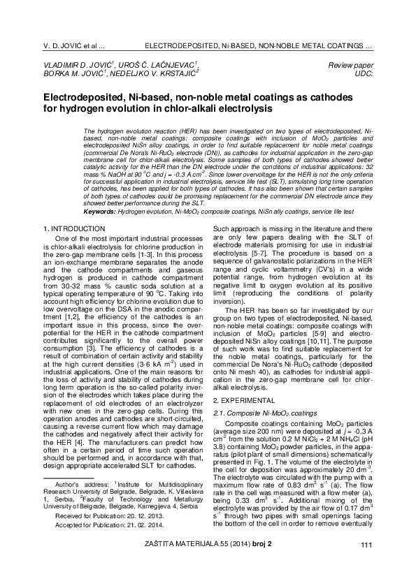 Uroš LačnjevacdownloadDownload free PDFNew hydrogen cathodes in acid medium: Case of nickel electrodeposited with heteropolyacids (HPAs)