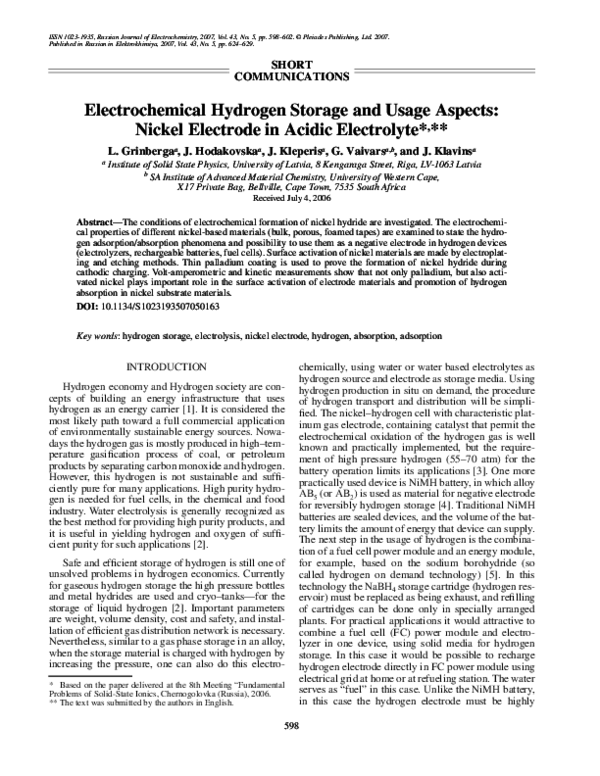 arrow_back_iosElectrochemical hydrogen storage and usage aspects: Nickel electrode in acidic electrolyteJ. Klavins, G. Vaivars, Līga GrīnbergadownloadDownload free PDFAbstract