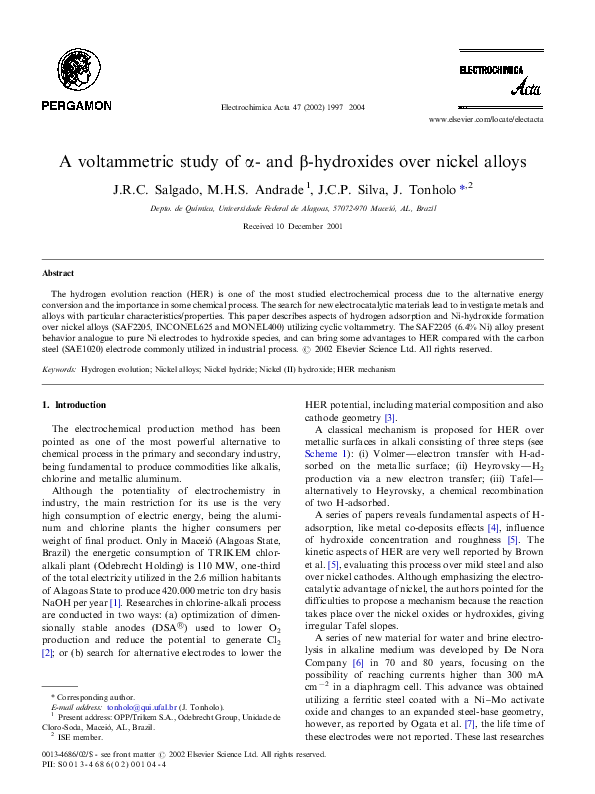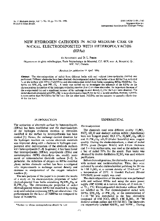 Oumarou SAVADOGOdownloadDownload free PDFElectrochemical studies of a nickel electrode for the hydrogen evolution reaction