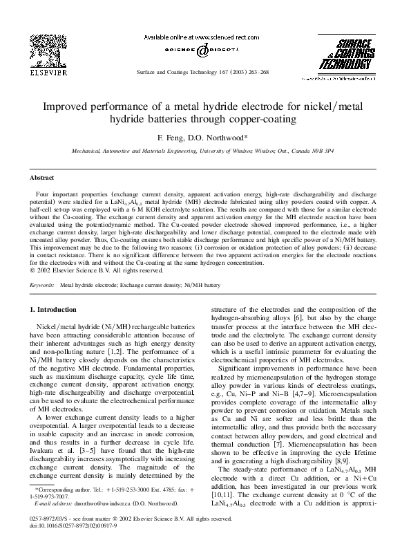 Frank de BruijndownloadDownload free PDFImproved performance of a metal hydride electrode for nickel/metal hydride batteries through copper-coating
