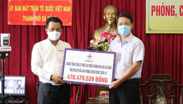 Thứ hai, 28/06/2021 14:05Đà Nẵng - Ông Ngô Tấn Cư, Thành viên Hội đồng thành viên, Tổng giám đốc Tổng công ty Điện lực miền Trung (EVNCPC) đã đến trao hơn 470 triệu đồng của CBCNV các đơn vị thuộc Tổng công ty trên địa bàn TP Đà Nẵng (trừ Công ty Điện lực Đà Nẵng) ủng hộ Quỹ vắc-xin phòng, chống dịch COVID-19