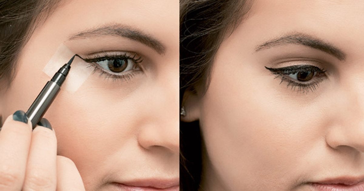 - Các bạn có thể dùng phần cán của thìa hoặc băng keo để tạo ra đường kẻ mắt eyeliner đều màu và đẹp nhất.