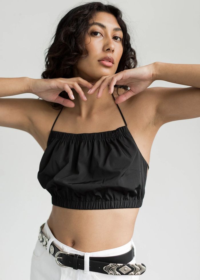 Article contentWhether you wear this spaghetti strap halter top by Amomento to the beach, an afternoon barbecue or a big night out, it’s an ideal example of just how flexible a good black top can be. Sexy and sweet, with a slight 90s nostalgic vibe, it is nylon, with an elasticated collar and hem, plus straps with cord-lock fastening so there’s no risk of anything coming exposed or undone.