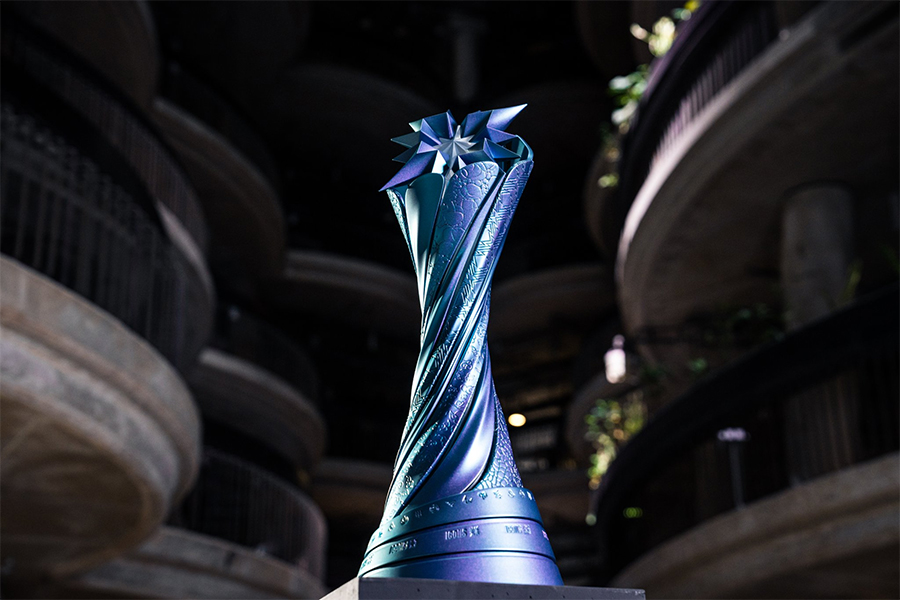 Chiếc cúp này được thiết kế với những đường vân dài tượng trưng cho hành trình đến với ngôi vô địch, 8 cánh hoa đại diện cho 8 khu vực lớn hiện tại, trong khi những biểu tượng quen thuộc trong game trở thành đường viền tôn thêm vẻ đẹp cho phần cúp ở trên.