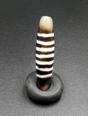 | | Natural Chung dZi Agate Bead, 19th c., made in Germany (538) Amazing natural antique striped agate bead. Found in Burma in the early 80's of last century. Perfect imitation of chung gZi made in Germany, in the stone factories of Idar Oberstein. Aged to the middle( of 19th century. These beads were maybe the first good replicas of the gZi beads. Actually you could find also"pure gZi" copies. They were identified by a famous american bead researcher, J.D. Allen, just in the 80's. of 20th c. They are not so common. And have their own market and collectors. A curiosity: Tibetans call them"Buthanese gZi" Size: from hole to hole: 39mm. diameter: 9mm. weight: 4.10grms. Import duties. Sales taxes(vat) and other charges are not included in the item prices or in the shipping charges. These charges are under the buyer’s responsibility. 物品的价格和 运费 不包括进口关税,增值税和其它的收费。买方对所有这些收费承担负责。 Please ... morecheck with your country’s customs office to determine what these additional costs will be. Before bidding/ buying. 为了检查这些收费是多少,请联络您当地的海关办公室前购买或出价。 If you are not satisfied of your purchase. We accept return within 14 days for a full refund, less postage. 如果对产品不满意, 请在购买商品 14 日之内退还, 可以获得全额退还. 但我们不能退还邮资。 Please look carefully to our pictures and read sizes and weight. Because pictures are oversized to show lacks and values. 请仔细看看物品的照片, 并且仔细阅读物品的大小和重量, 因为照片被放大了是为了显示物品特点的。 We do not accept to undervalue our items. 我们也想通知客户不能讨价还价,并且不能报关更低的价格。 Please do not pay before receiving the final invoice including shipping fees. 请等到包括运输费的最后发票才付钱。 We’ll ship out of Europe purchases over euro 100.00 ONLY by FedEx courier. 订购满 100.00 欧元才可以发运到欧洲以外各地,我们只通过联邦快递(FedEx courier) 发货。 Insurance on demand. 如果您需要的话. 我们会提供保险服务。 Our items are or antique and will show signs of age. However we will point out any damage or fault. 我们的物品都是老式或者古董. 所以会显示岁月留下的痕迹. 不过我们会显出物品的特点。 Please look at our pictures. They are extremely precise, but they are just pictures, so colors could change from monitor to monitor. 请您注意看商品的照片:虽然我们非常仔细地拍照片, 但是不同的显示器会显示不同的颜色。 If you have any doubt about colors. Please call us or write to us |