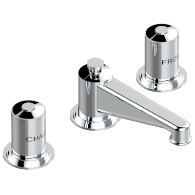 The simplistic and refined Faubourg collection by designer, Pierre-Yves Rochon, bares exquisite detail in this luxurious line of bathroom fixtures and accessories. Rochon, who spent his youth traveling the world, has strong insight into cultural trends and artistic movements. His inspirations can be seen in the clean lines of Faubourg, whose handles are cleverly imprinted with “CHAUD” and “FROID”.