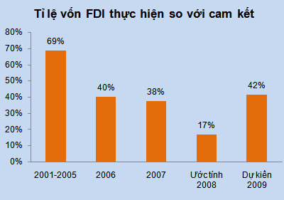 Dù sao thì con số FDI đăng ký vẫn chỉ là để đăng ký, không có nhiều ý nghĩa trong việc hoạch định chính sách. Đặc biệt trong giai đoạn khủng hoảng tài chính toàn cầu, các dự án càng “khổng lồ” càng khó tiếp cận nguồn vốn và càng dễ bị trì hoãn.Theo Tuần Việt Nam
