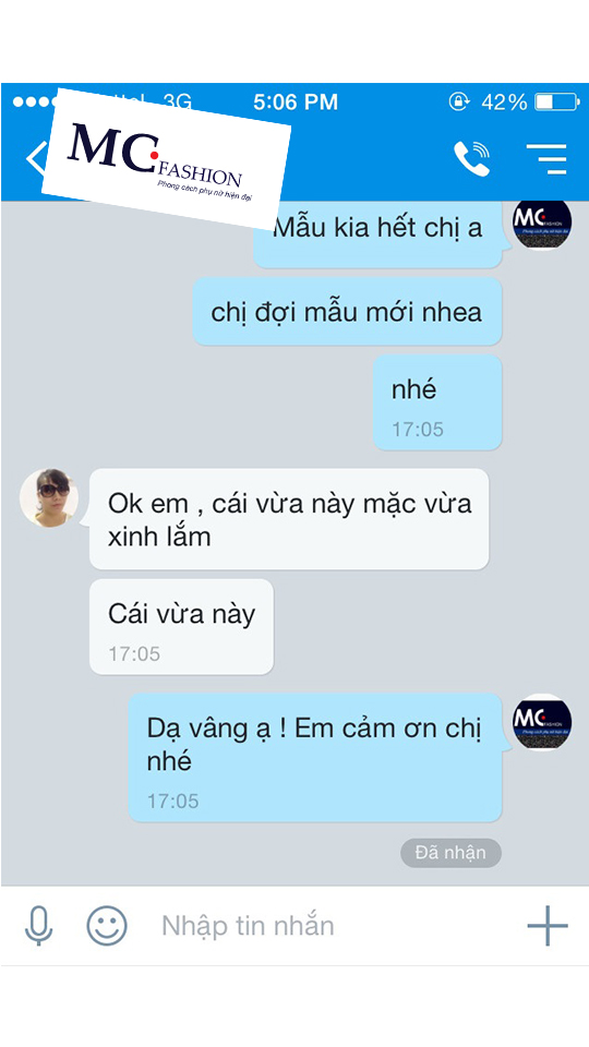 Những dòng feedback của quý khách hàng và những phản hồi về tình hình kinh doanh thuận lợi của các đại lý trên khắp cả nước là sự động viên lớn nhất để MC Fashion tiếp tục phấn đấu liên tục cải thiện chất lượng sản phẩm và dịch vụ, vươn lên trở thành 1 trong những hãng thời trang dẫn đầu toàn ngành.