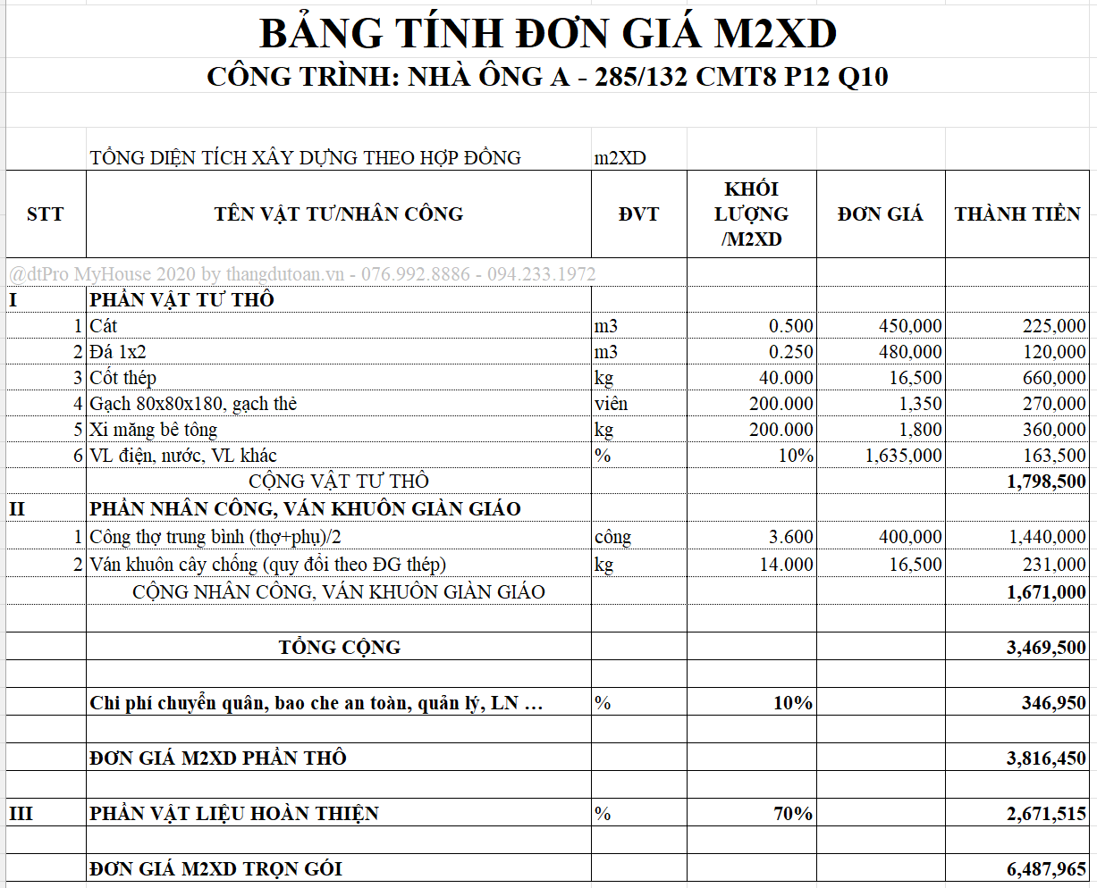 File Excel Tính đơn Giá M2 Xây Dựng - Thắng Dự Toán