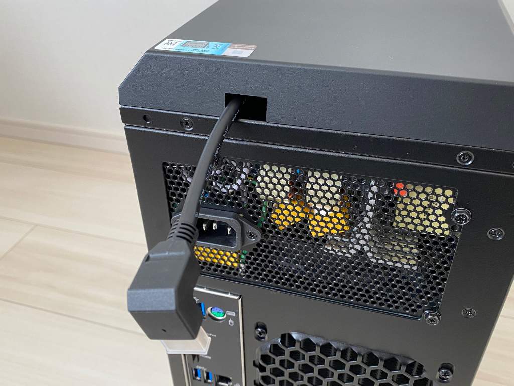電源はケース上部に配置。CPUやグラボからの熱もリアファンから効率的に排気します。