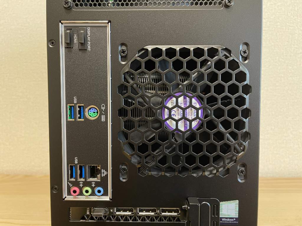 ▲背面には120mmファン1基とリアパネル、電源、グラボ端子