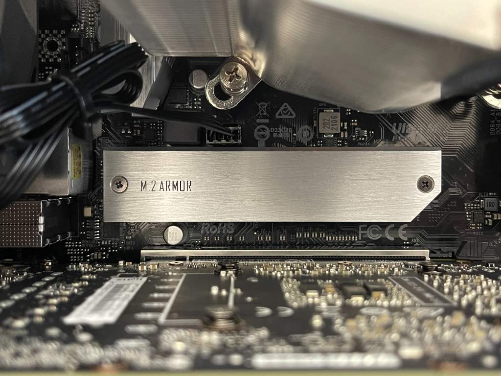 M.2 SSDはヒートシンク付き。Western Digital製の512GB NVMe SSDです。