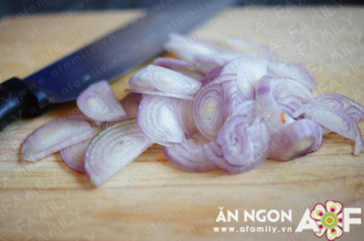 | | Bước 2: Làm nóng dầu ăn trong chảo, cho hành tím vào xào thơm. |