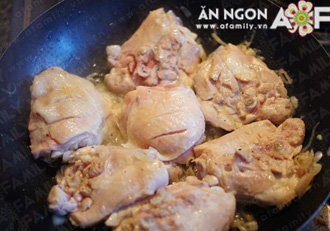 | | Bước 4: Châm thêm ít nước vào xâm xấp mặt gà, đập nắp chảo nấu cho tới khi gà chín là được. Trong khi nấu thỉnh thoảng bạn nhớ mở nắp ra trở miếng gà cho thấm đều gia vị. |