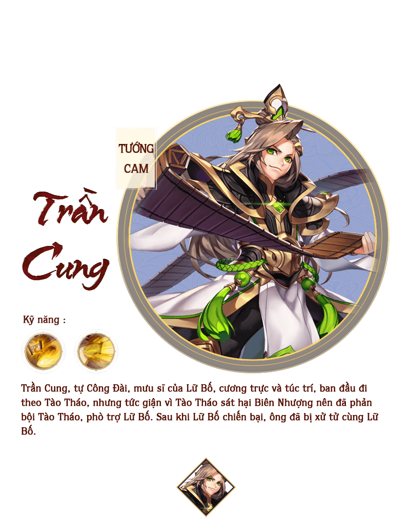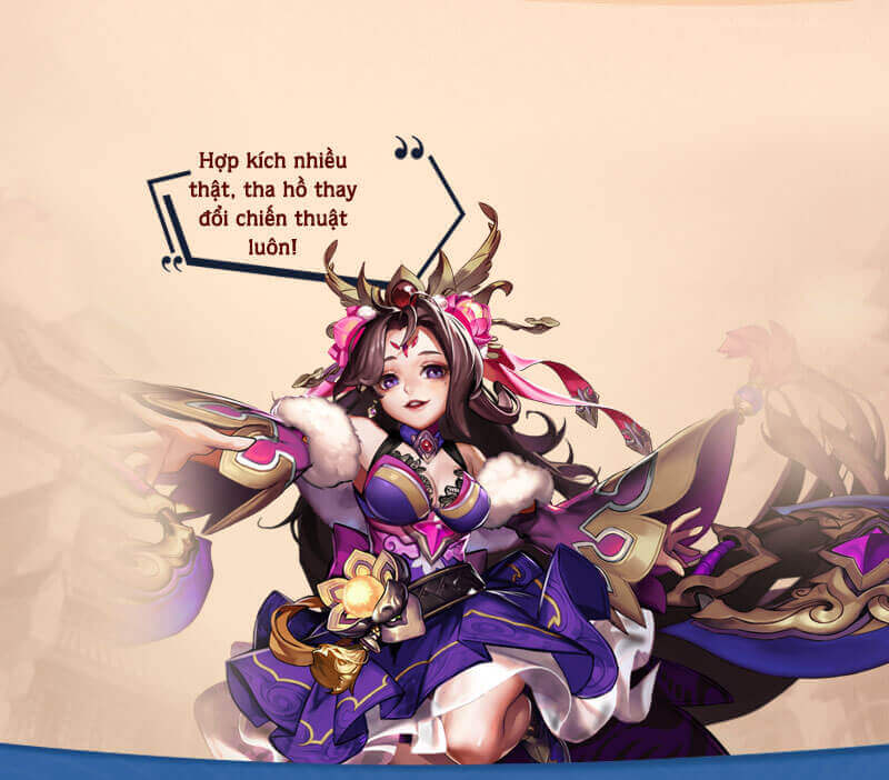 Khiến toàn bộ phe địch chịu 151% ST phép, 30% làm mục tiêu giảm 2 nộ khí, phòng thủ của mục tiêu giảm 15%, trong 2 hiệp. Đồng thời né tránh của toàn bộ mục tiêu phe ta tăng 15%, trong 2 hiệp.