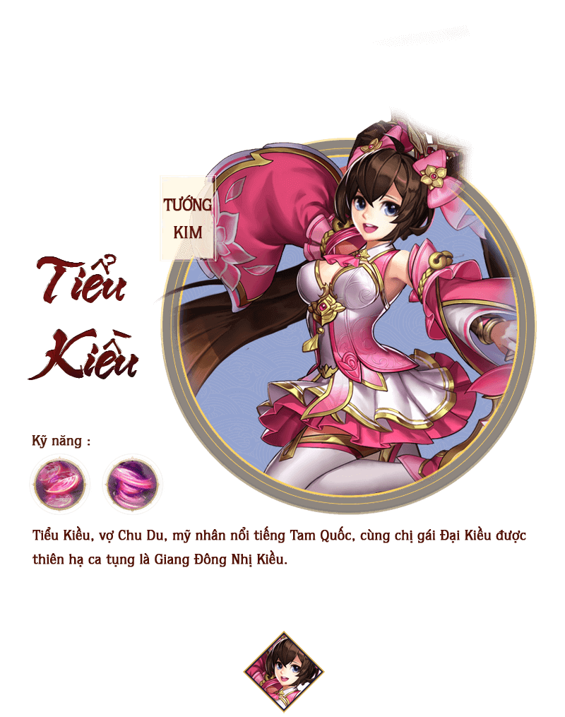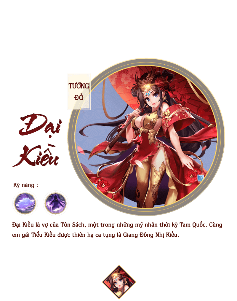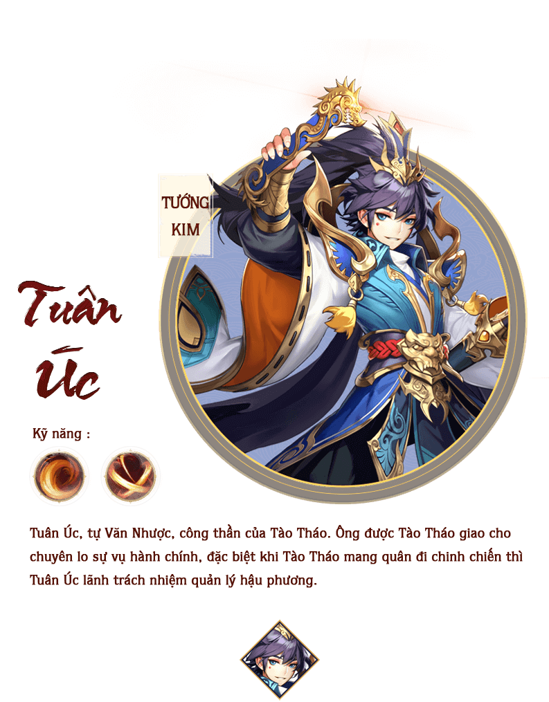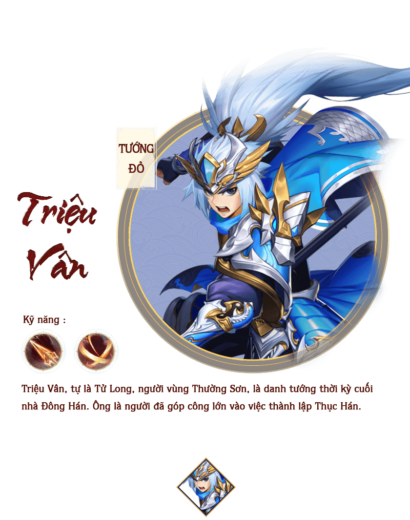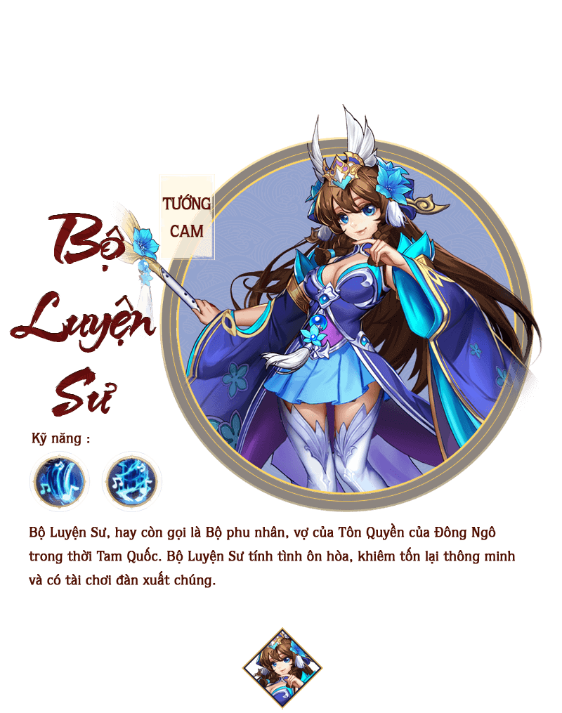 Trị liệu cho cả phe ta (107%+700), làm bạo kích mục tiêu tăng 10%, trong 2 hiệp. Đồng thời 1 đơn vị phe ta bạo kích tăng 15%, trong 2 lượt