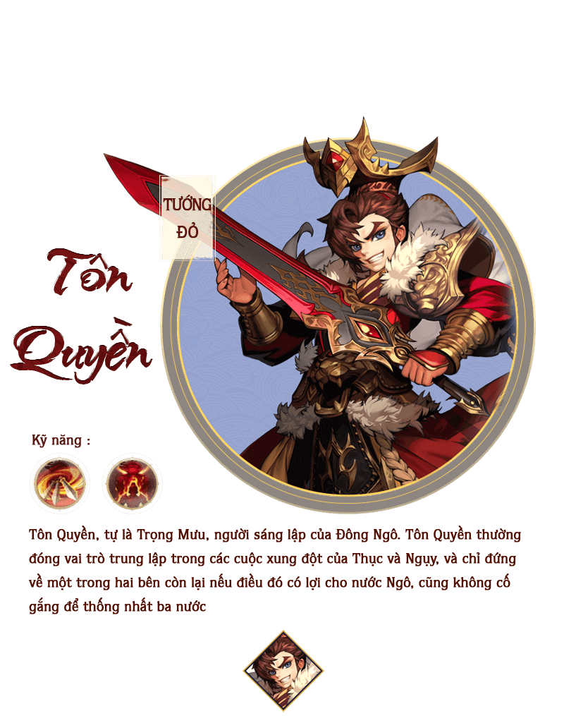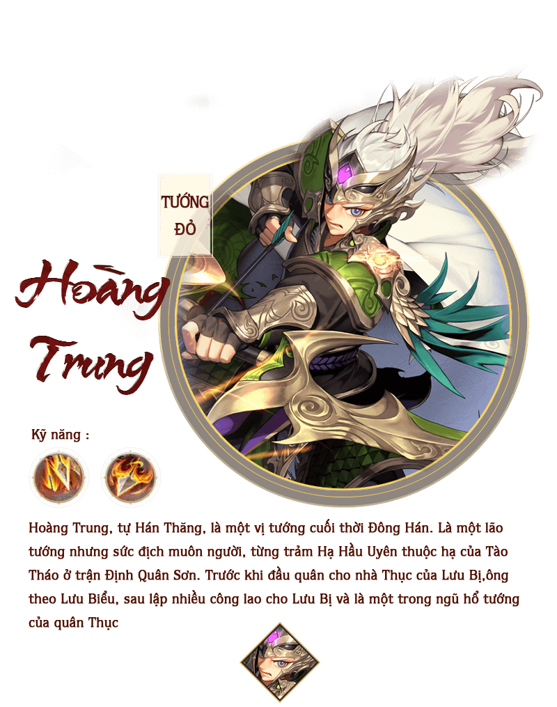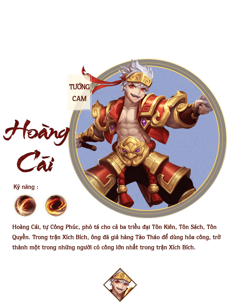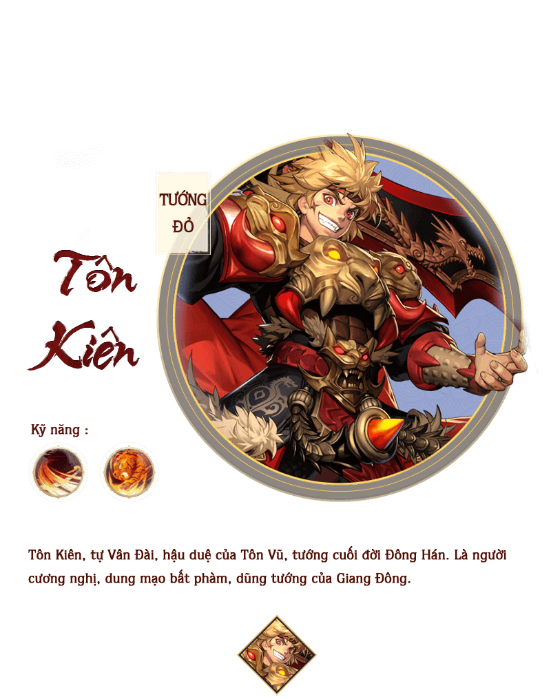 Gây 133% STVL cho hàng trước, 50% gây [Thiêu Đốt] (Mỗi hiệp khiến người thi triển mất sinh lực bằng 30% tấn công, bỏ qua phòng thủ) trong 1 hiệp.
