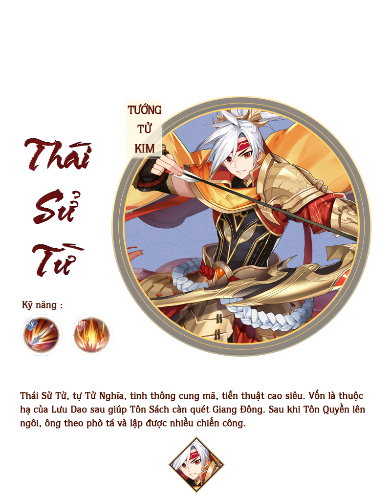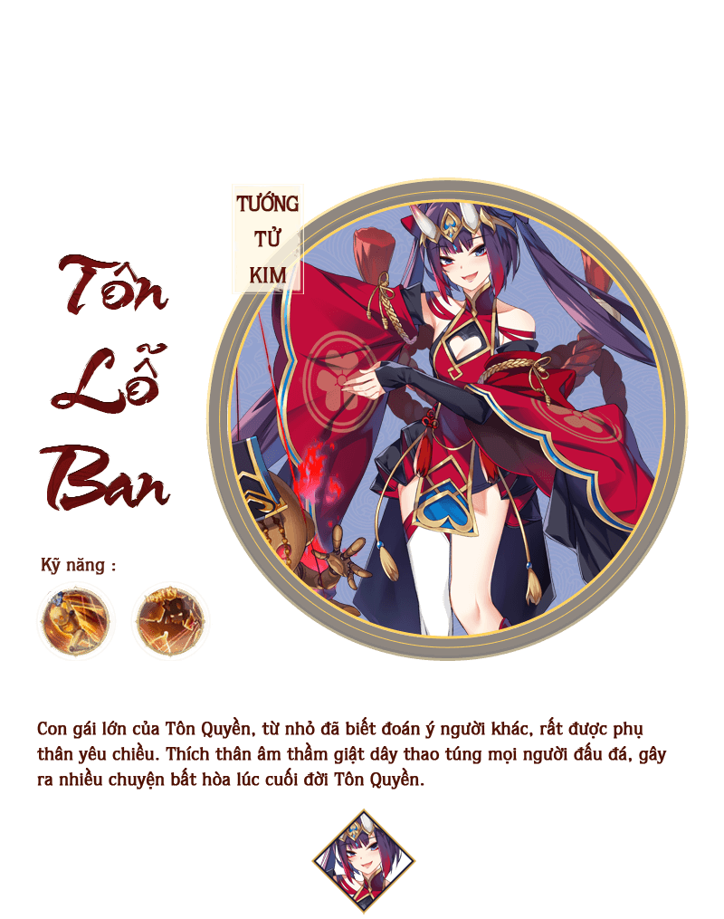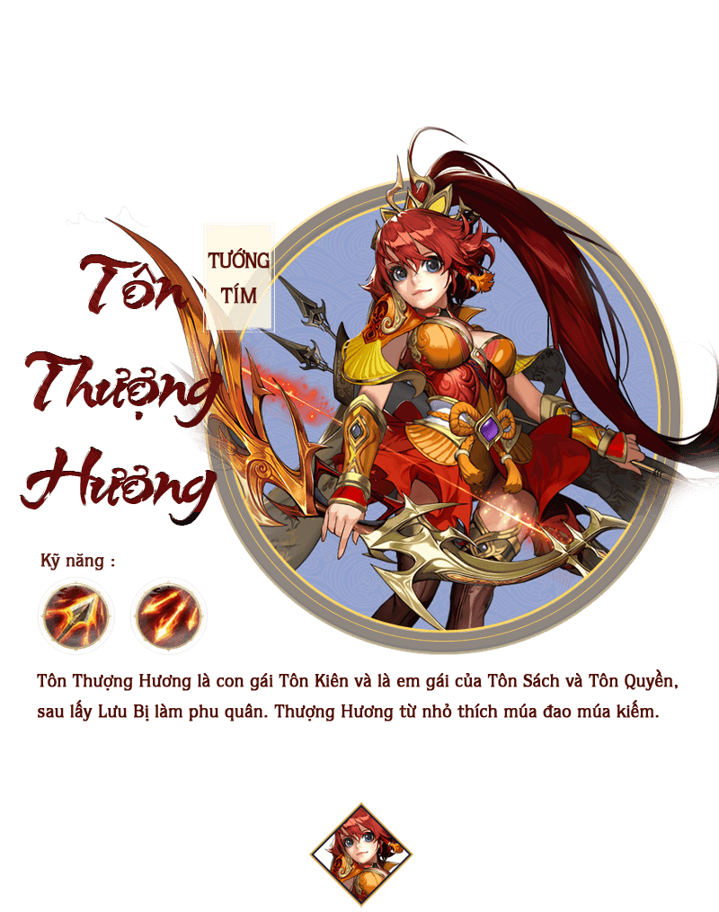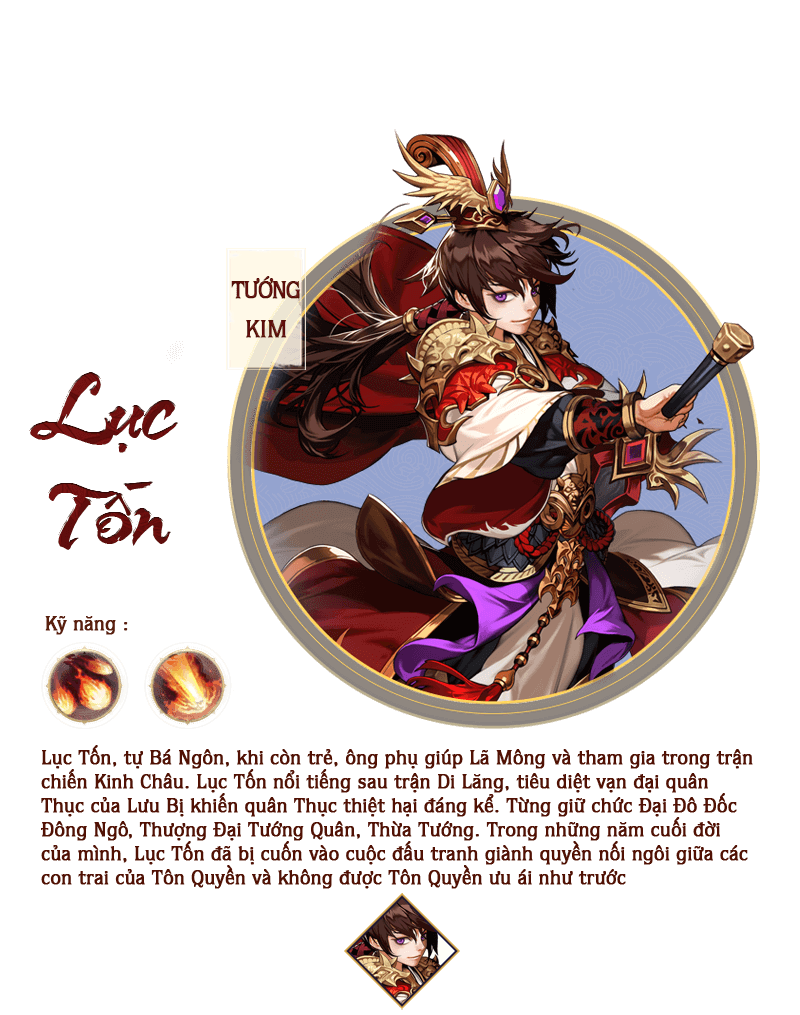 Gây 241% ST phép hàng trước, có tỉ lệ giảm ST và bạo kích, trong 2 hiệp. Có thể khiến mục tiêu trừ 5% SL/lượt) trong 2 hiệp. Gây thêm 250% ST phép cho địch có ít hơn 4 Nộ.