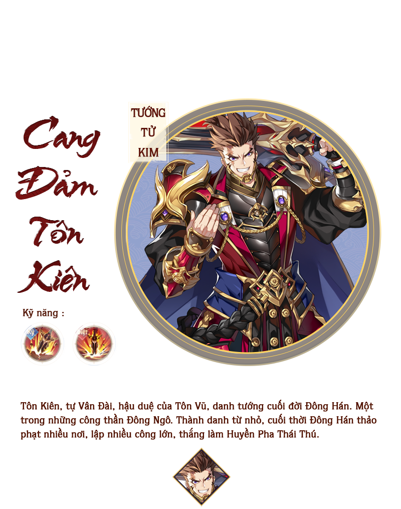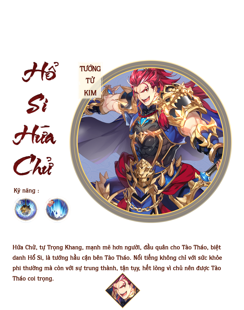 Khiến 1 kẻ địch chịu 975% sát thương vật lý, lần này tấn công bỏ qua của mục tiêu 50% phòng thủ, gây hiệu quả [Nghiền Nát], đồng thời bản thân vào trạng thái [Hổ Si], duy trì 2 hiệp. (Ban đầu 50 điểm sát ý, đồng đội hành động hồi cho bản thân 25 điểm, trận này chỉ kích hoạt 1 lần).