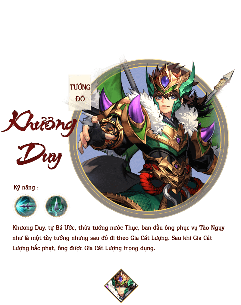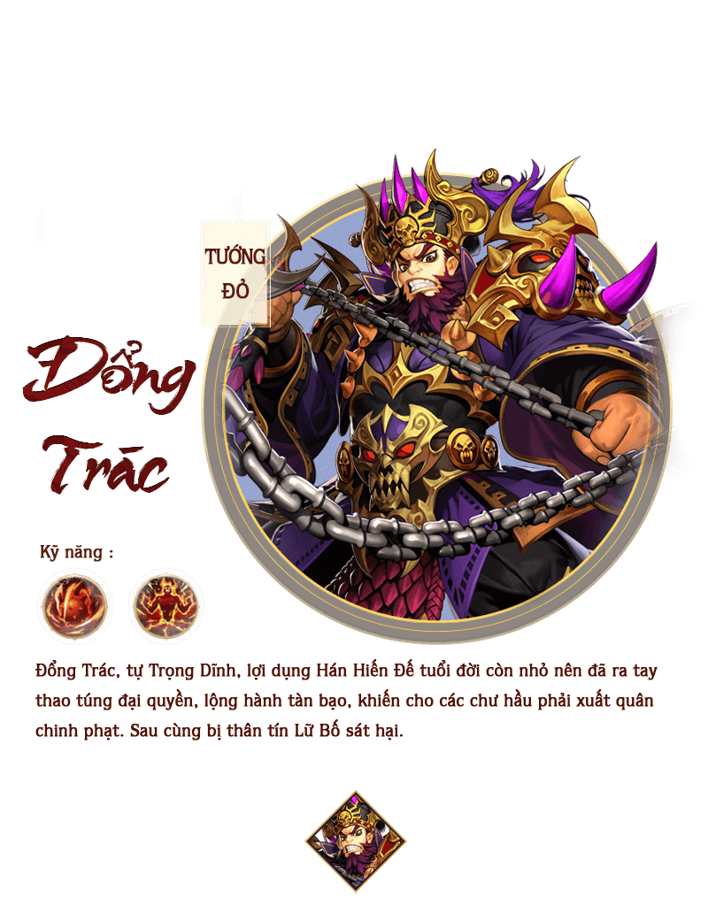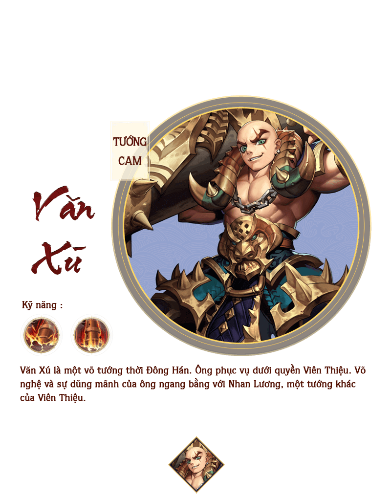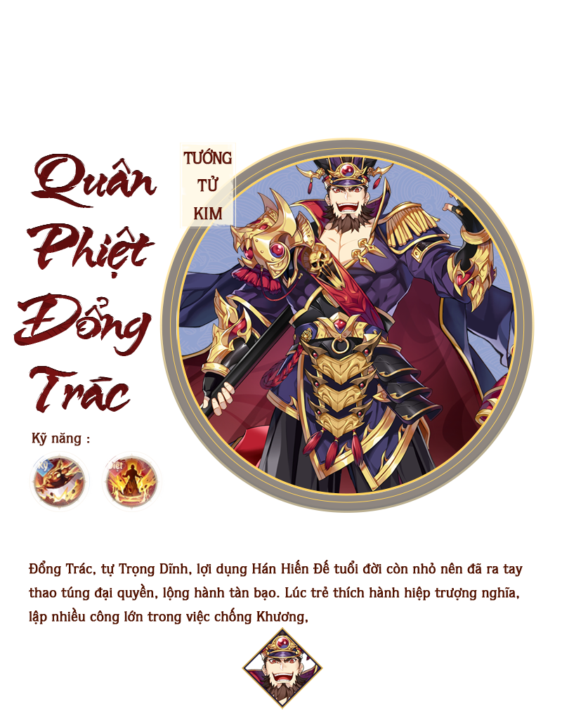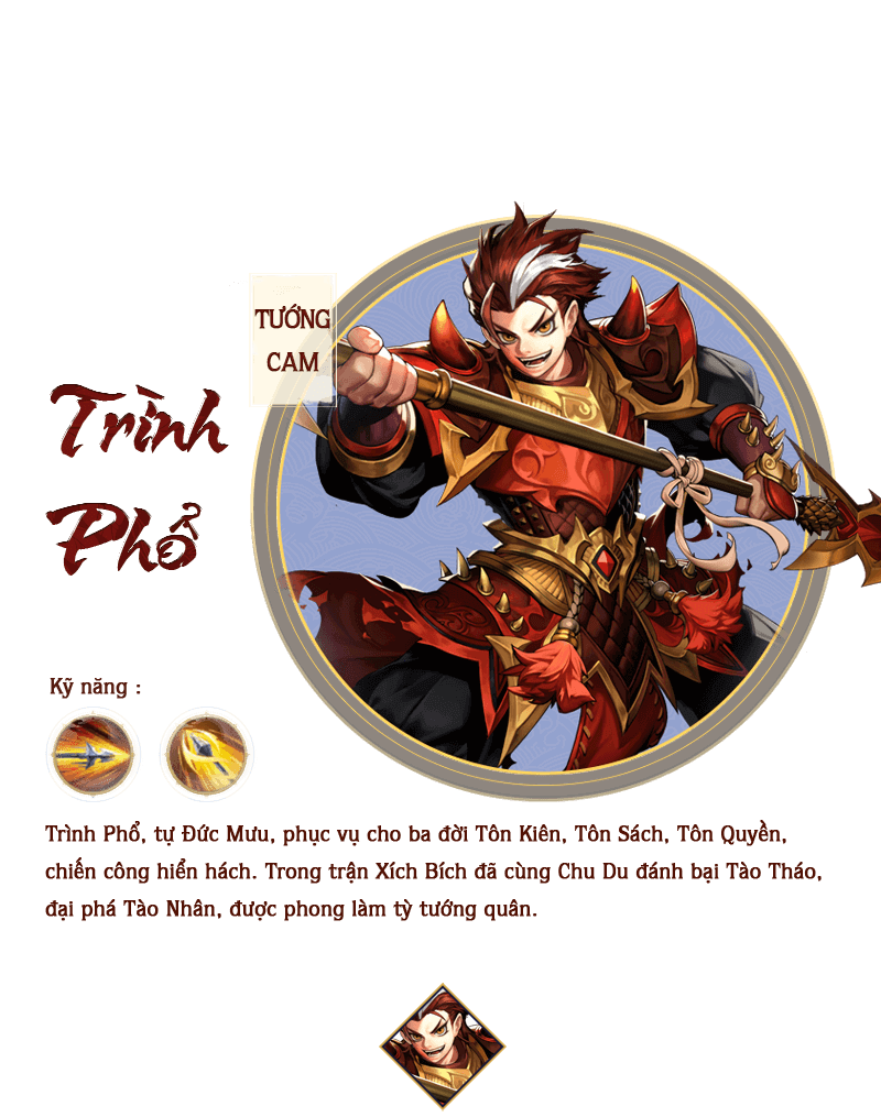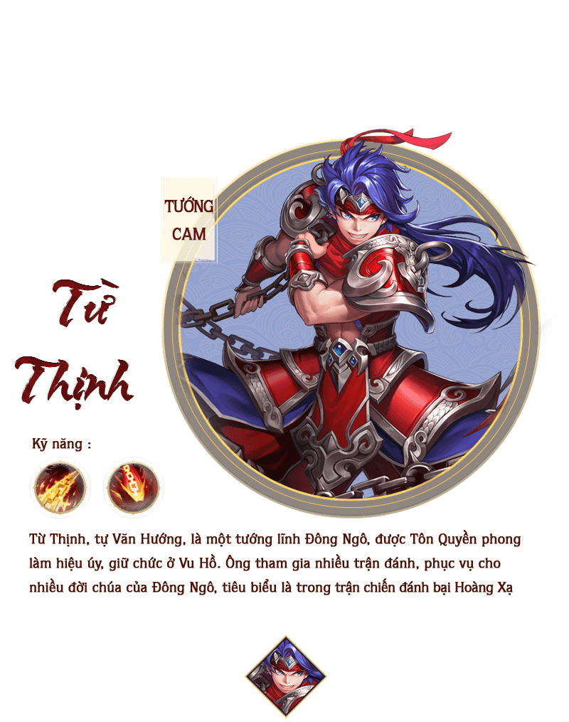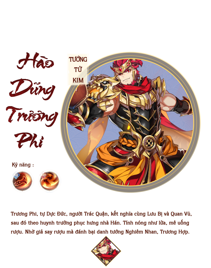 Khiến 1 cột phe địch chịu 183% STVL, kháng bạo của bản thân tăng 15%, trong 2 hiệp.