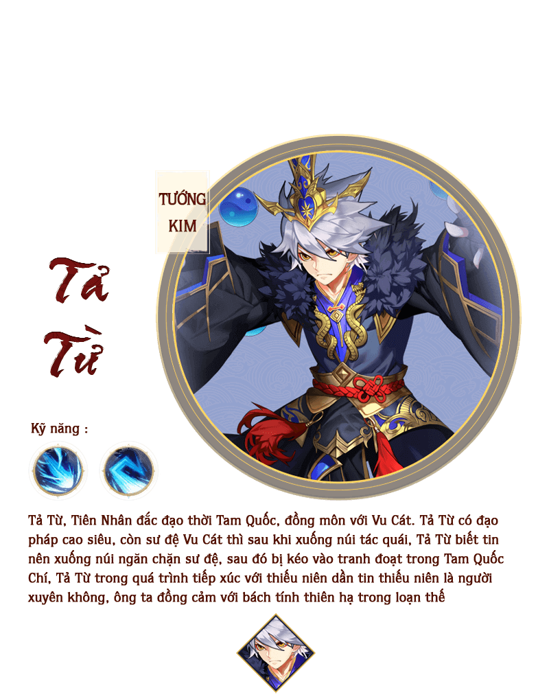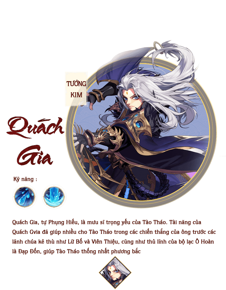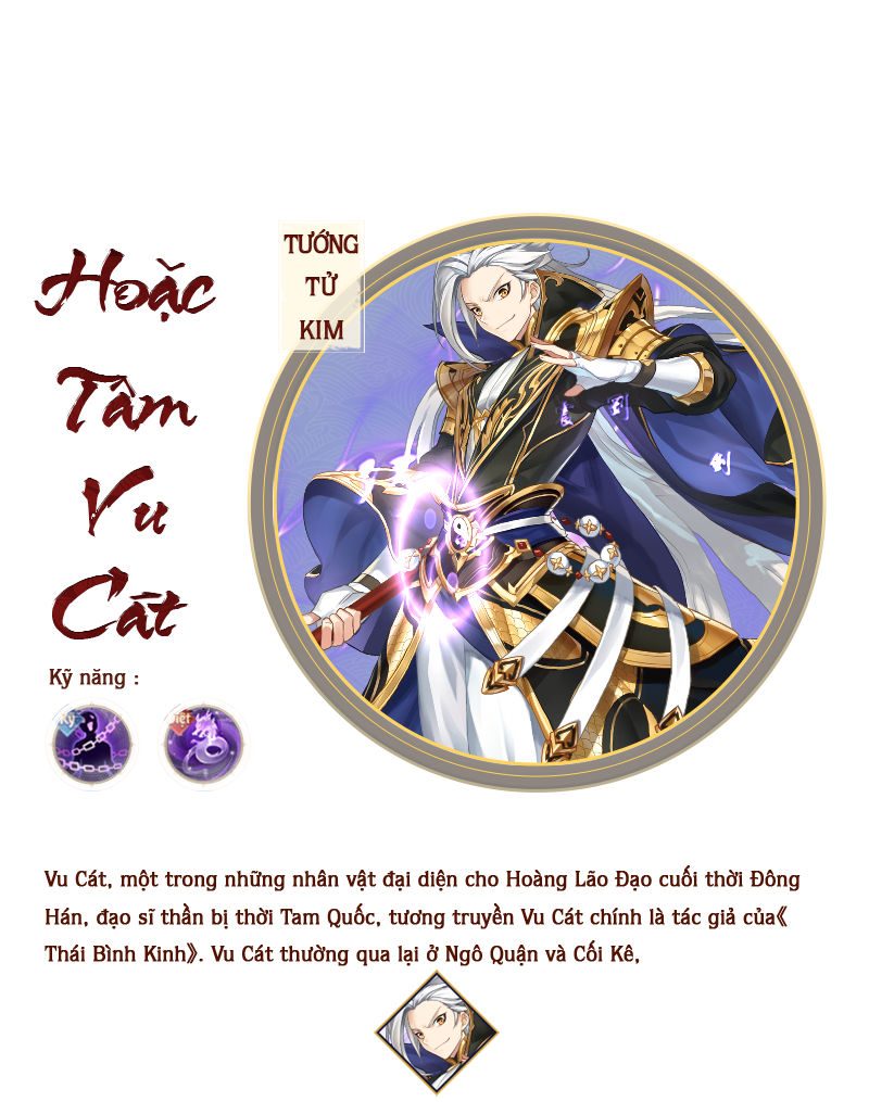 Gấy 241% ST phép cho 3 địch, 20% rơi vào [Trầm Mặc] (không thể thi triển kỹ năng) trong 2 hiệp, -20% kháng bạo trong 2 hiệp. Địch có SL thấp nhất chịu 150% ST.