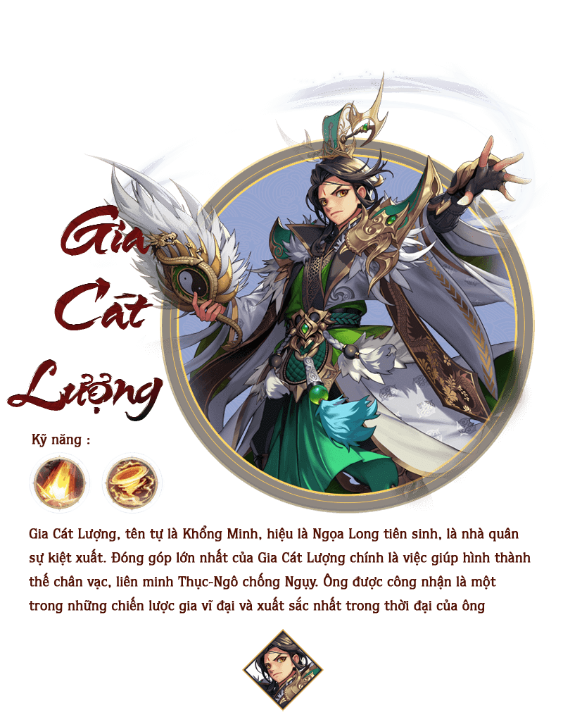 Trị liệu cho cả phe ta (107%+700), đồng thời đơn vị sinh lực dưới 60% tăng thêm trị liệu (80%), 1 đơn vị ngẫu nhiên phe ta tấn công tăng 15%, trong 2 hiệp.