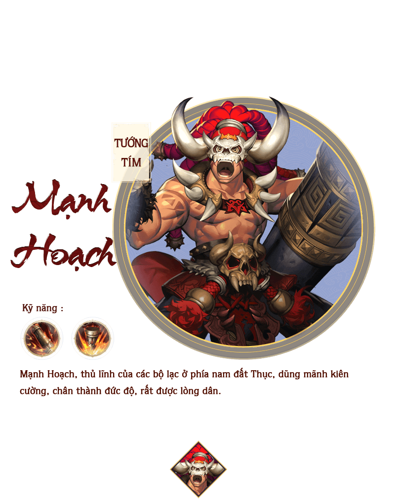 Khiến kẻ địch hàng trước chịu 179% STVL, 30% làm mục tiêu giảm 2 nộ khí, giảm sát thương giảm 20%, trong 2 hiệp.